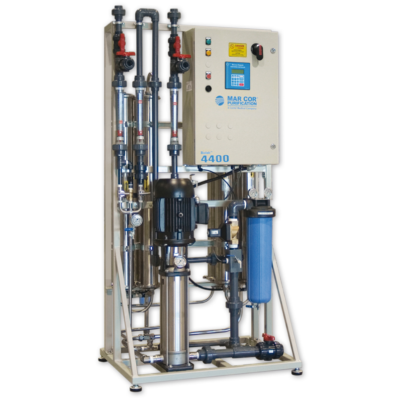 Los Sistemas de Ósmosis Inversa Médica, están diseñados para producir hasta 17 gpm (aprox. 64.35 L/min) de agua purificada, registrados como equipo médico por la FDA (510K).