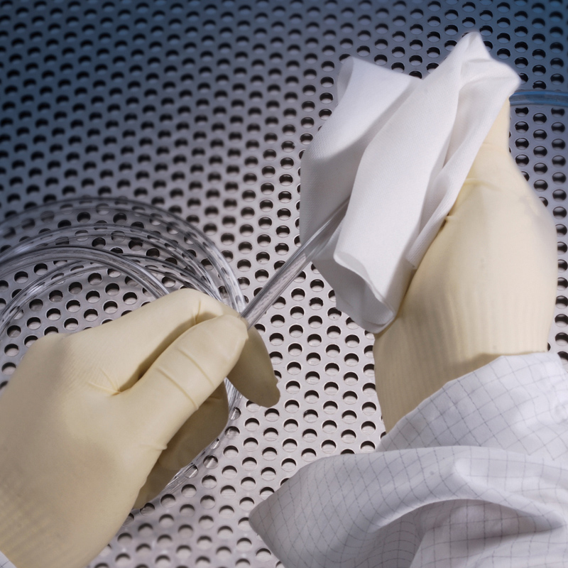 Los paños PROSAT® de polipropileno fundido ofrecen una limpieza excepcional, adecuados para su uso en una amplia variedad de entornos críticos. Saturados con una solución de 70% de isopropanol grado USP y 30% de agua desionizada, los paños proporcionan una aplicación uniforme y consistente de la solución sobre la superficie. Los paños PROSAT® PS-911 y PROSAT® PS-850 son excepcionalmente limpios y también están libres de aditivos de cualquier tipo. Este polipropileno fundido en particular contiene niveles muy bajos de sodio y otros iones.