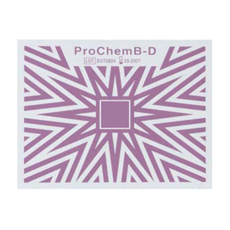 La Prueba de Eliminación de Aire Prochem BD para Esterilización es un indicador químico desechable, equivalente a la Prueba Bowie-Dick (Tipo 2), diseñado para verificar diariamente la eficiencia del sistema de eliminación de aire y la penetración de vapor saturado en las cámaras de los esterilizadores de vapor asistidos por vacío. Su uso es obligatorio en los Centros de Esterilización para ciclos de 132°C a 134°C.